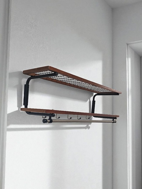 Rare porte-manteau mural en teck et métal, style Mid-Century, fabriqué en Suède