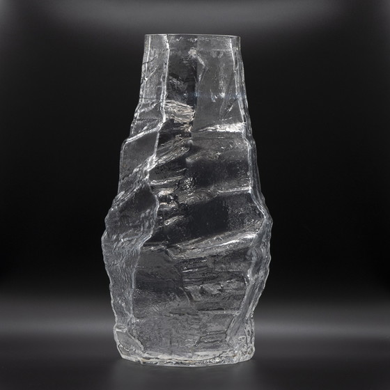 Datant du Mid Century, ce vase exquis témoigne de l'esprit d'innovation qui animait les Eames, Colani, Panton, Sarpaneva et d'autres designers emblématiques de cette époque. Sa forme magnifique, enveloppée dans un verre de cristal avec une décoration en relief complexe, dégage un charme intemporel qui transcende les frontières du temps et du style.