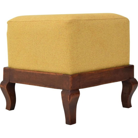 Repose-pieds Art déco en bois et tissu, Tchécoslovaquie, années 1930