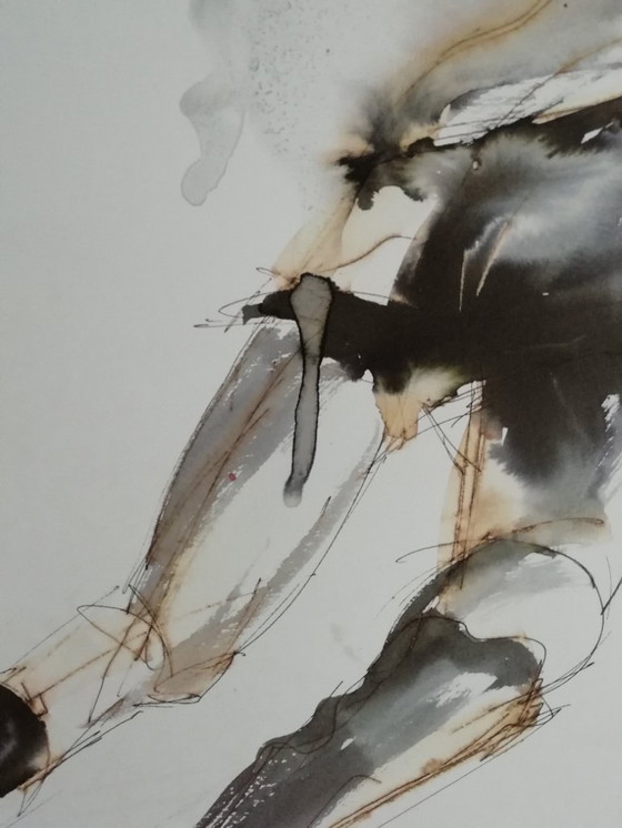 Plongez dans l'énergie dynamique de « Running » de Rob Jacobs, une œuvre abstraite captivante qui capture l'essence du mouvement et de la vitalité. Cette œuvre, réalisée dans une palette saisissante de noir, de brun et de blanc, évoque la fluidité et le mouvement, ce qui en fait un ajout parfait à toute collection d'art moderne.