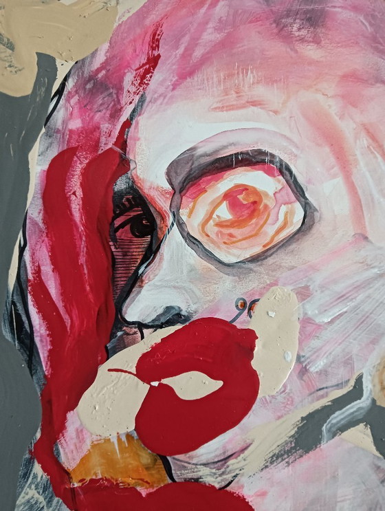 Plongez dans l'univers énigmatique de « Suspicious Mind » de Rob Jacobs, une peinture abstraite saisissante qui captive par son utilisation audacieuse des couleurs et des formes. Cette œuvre invite à explorer les profondeurs des émotions humaines à travers la représentation saisissante d'un visage, rendu dans un mélange dynamique de tons rouges, roses, gris et beiges.