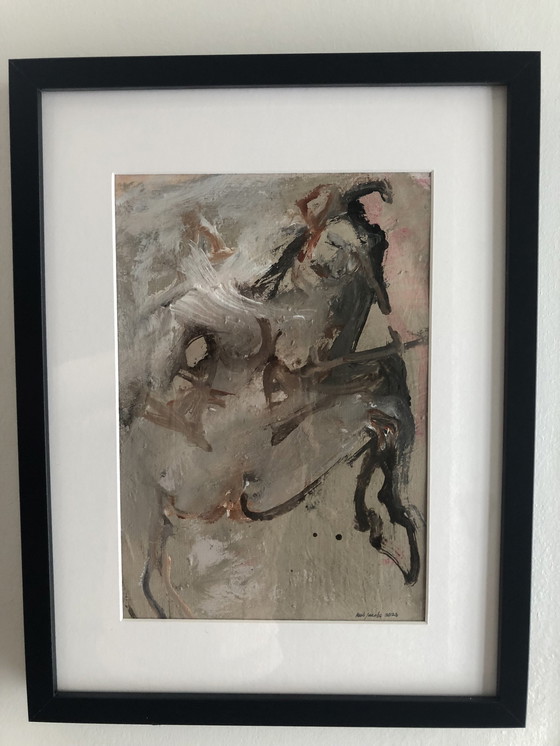 Cette œuvre encadrée est réalisée avec de la peinture acrylique sur une toile de lin. Elle mesure 42 x 32 cm et a une épaisseur de 3,5 cm (passe partout et cadre noir compris). L'œuvre elle-même mesure 29 x 20 cm. Datée et signée à la main en 2023. En provenance directe de l'atelier de Weert.
