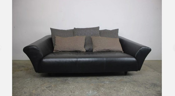 Rolf Benz Canapé Modèle 333 Noir Cuir Avec 5 Nouveaux Coussins Tissus