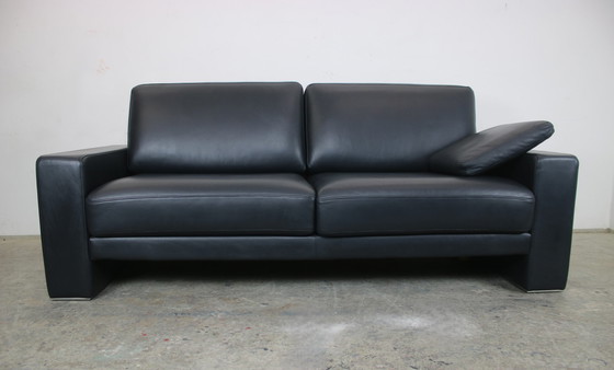 Rolf Benz Ego Canapé trois places bleu foncé Canapé en cuir avec baguettes chromées