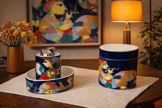 Plongez dans un univers artistique vibrant avec cette pièce de collection Rosenthal, Aladin, issue de la collection Studio Linie. Ce magnifique objet est un véritable régal pour les yeux, offrant un kaléidoscope de couleurs et des motifs fantaisistes qui ne manqueront pas de susciter l'admiration dans n'importe quelle pièce. Idéal pour les collectionneurs et les amateurs d'art, il apporte une touche d'élégance ludique à votre intérieur. Posé sur une étagère ou utilisé comme centre de table, il est une manière charmante d'affirmer votre style unique.