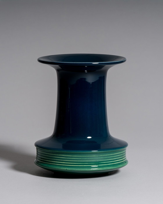 – le modèle de 20 cm en bleu-vert, avec sa forte inclinaison vers le haut, évoque une colonne industrielle adoucie par la porcelaine. Cela illustre parfaitement ce qui a rendu le partenariat Rosenthal × Wirkkala si important : la rencontre entre la sérénité sculpturale scandinave et la précision technique bavaroise.