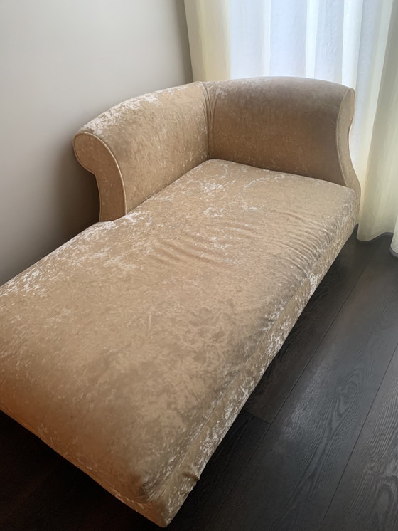 Structure en bois. Logos à l'intérieur du tissu. Elle s'intégrera parfaitement à tout intérieur sophistiqué. Cette méridienne allie confort et style, idéale pour se détendre ou comme pièce maîtresse de votre décoration.
