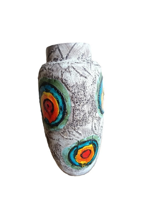 Vase vintage Scheurich Fat Lava Bullseye, Allemagne de l'Ouest – Très grand (52 x 23 cm), au design coloré.