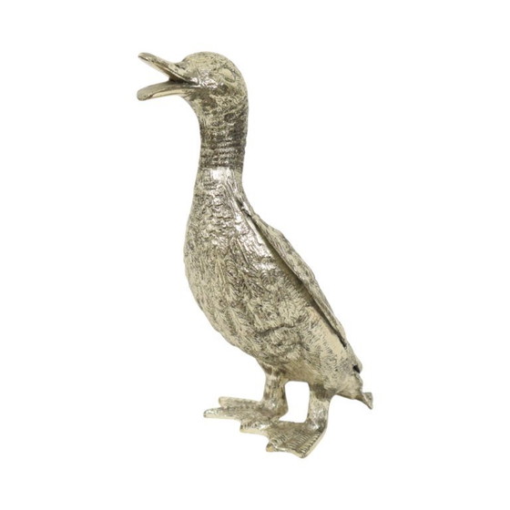 Jolie statuette vintage de canard ou d'oie, sculpture en métal argenté, entièrement dans le style de Mauro Manetti, non signée, seconde moitié du XXe siècle, vers 1970.