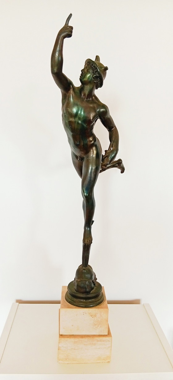 Cette sculpture extraordinaire de Mercure ailé capture l'essence du mouvement et de la grâce, incarnant la figure mythologique avec une maîtrise inégalée. Façonnée en bronze, elle représente Mercure dans une pose dynamique, un bras levé vers le ciel et l'autre semblant guider le vent. Le socle en marbre ajoute une touche d'élégance et de stabilité, faisant de cette pièce un ajout parfait à toute collection d'art.
