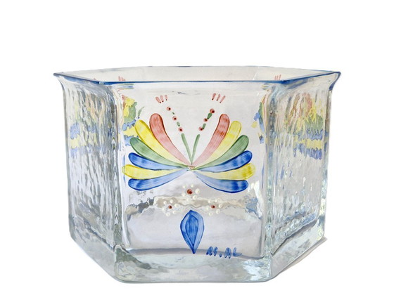 Créé par Renate Stock pour Sea Glasbruk Kosta, Suède. Signé à la peinture avec les initiales de la créatrice et de l'artiste.