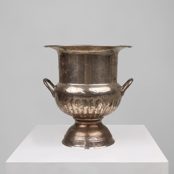 Seau à champagne ancien en cuivre argenté de forme Médicis, années 1890