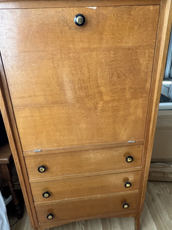 Découvrez ce secrétaire vintage, une pièce qui évoque le charme intemporel du design d'antan. Fabriqué en bois robuste, ce meuble offre une allure chaleureuse et authentique, idéale pour ajouter une touche rétro à votre intérieur.