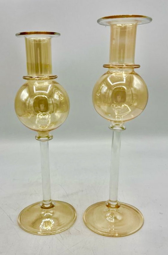 Seguso Bougeoir en verre de Murano incrusté d'or 24K