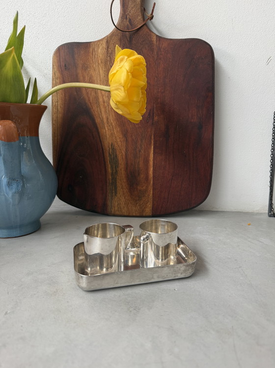 Service à lait et à sucre vintage en métal argenté – Hollandia Plate – Design Art Déco