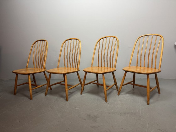 Set of 4 Mid-Century Design Spindle Back Dining Chairs by Bengt Akerblom & Gunnar Eklöf for Nässjö Stolfabrik, Sweden 1950s.