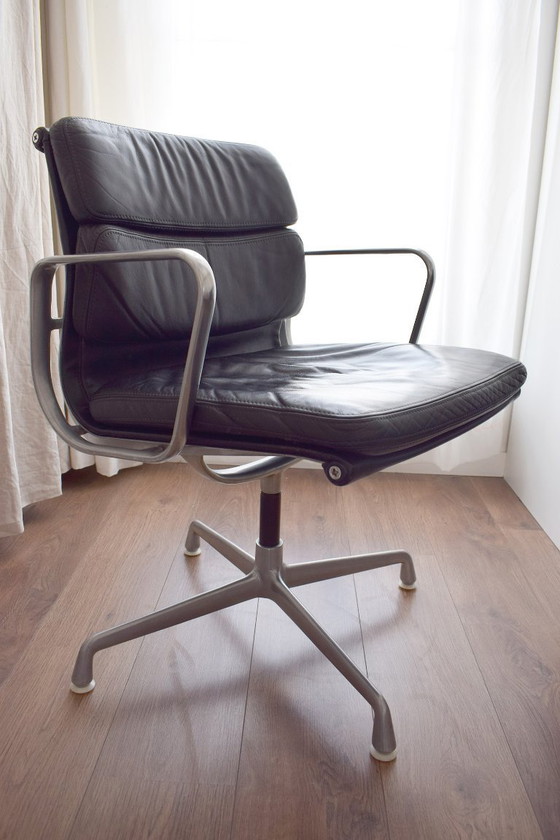 Siège de conférence Eames Herman Miller Soft Pad Group en cuir noir