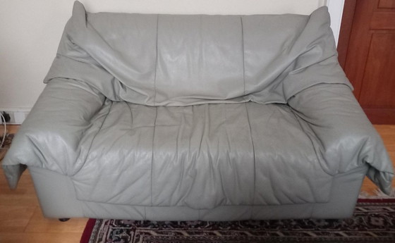 Sièges 2 places en cuir gris clair au design rétro vintage