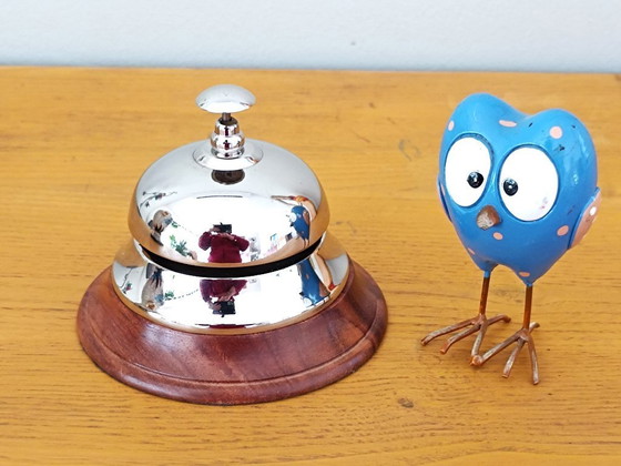 Cette sonnette est en très bon état général, le chrome est propre et brillant, la base en bois impeccable et le mécanisme parfaitement fonctionnel.