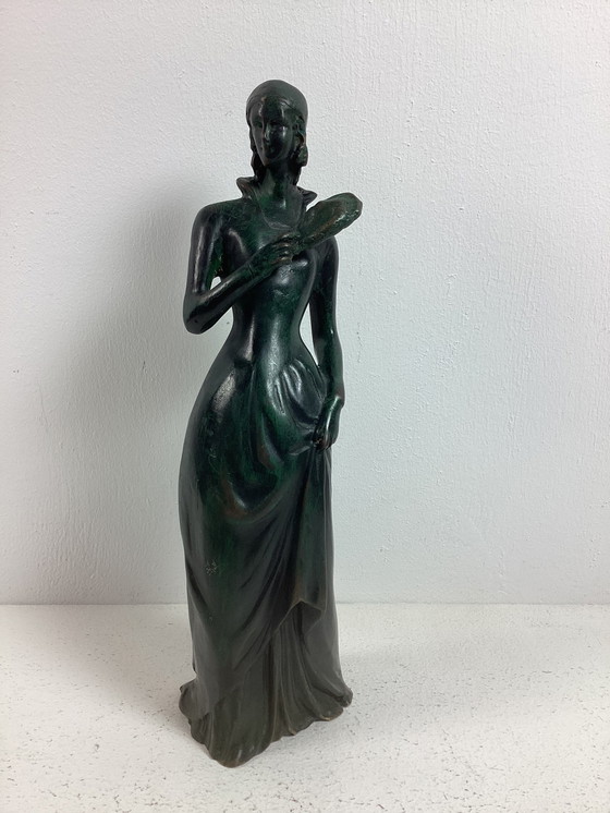 Statue Art nouveau/déco d'une jeune femme avec un éventail