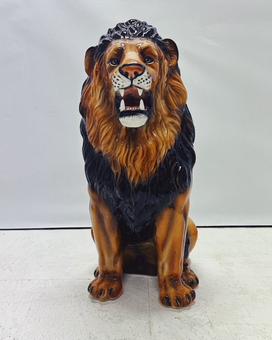 Statue de lion unique, entièrement réalisée à la main. Cette statue de style Hollywood Regency, en céramique peinte à la main et fabriquée en Italie, apportera une touche d'élégance et de caractère à votre intérieur !