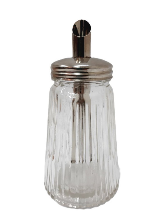 Remontez le temps avec ce ravissant sucrier vintage en verre, un ajout charmant à toute cuisine ou table. Son élégant design en verre côtelé est complété par un couvercle en métal épuré, alliant fonctionnalité et une touche de nostalgie.
