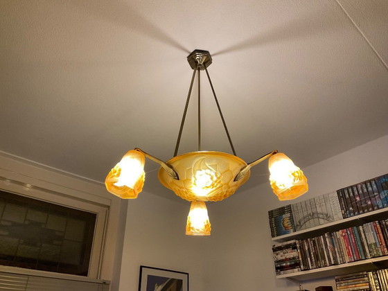 ÉtatTrès bonCouleursOr, Marron, Orange, CrèmeMatériauCuivre, VerreQuantité1Hauteur80 cmLargeur70 cmProfondeur40 cm