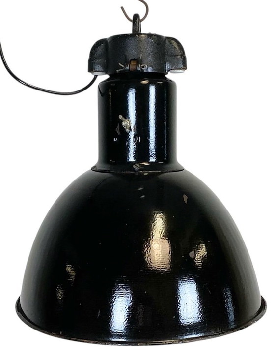 Suspension Bauhaus en émail noir industriel, années 1930