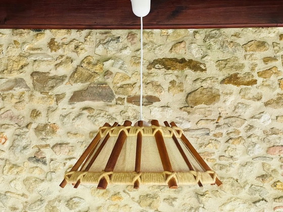 Suspension en bois et jute, style scandinave vintage, années 1960