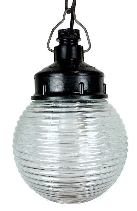 Suspension industrielle en bakélite avec verre côtelé, années 1970