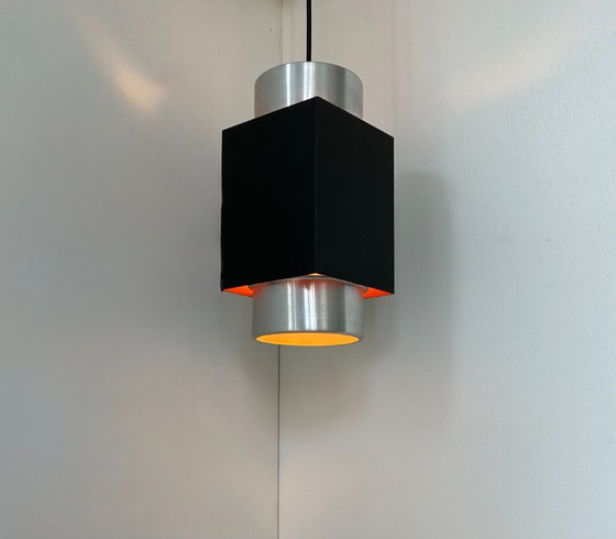Suspension composée d'une structure en chrome et métal laqué noir mat, produite en Scandinavie dans les années 70.