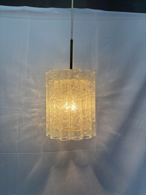 Suspension vintage Doria Leuchten tubes en verre glacé 1960/70