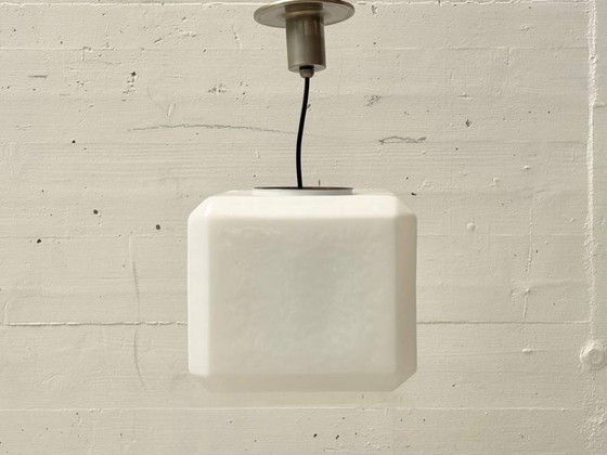 Suspension vintage en verre opalin cubique, années 1940