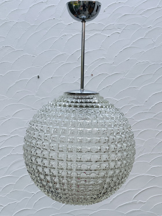 Sublimez votre intérieur avec cette magnifique suspension de style Holophane, véritable incarnation de l'élégance Art déco. Son design en verre complexe capture et réfracte la lumière avec brio, créant une ambiance envoûtante dans n'importe quelle pièce.