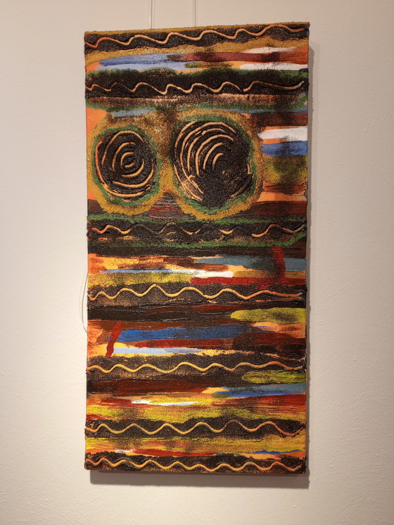 Découvrez l'expression unique de « TENERIFE » de T. Van Steenbergen, un nouveau chef-d'œuvre qui capture l'essence même de l'île de Tenerife. Cette œuvre combine peinture acrylique et véritable sable noir des plages de Tenerife, offrant un lien tangible avec la nature. Ses couleurs vibrantes et ses textures insufflent une énergie dynamique à tout espace.