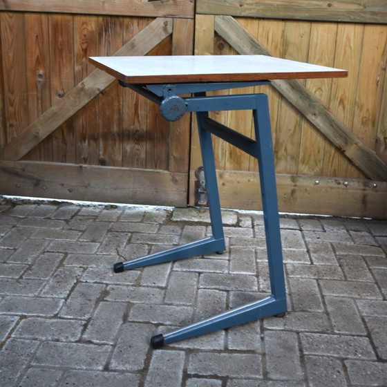 Mobilier scolaire Marko. années 50-60. le plateau peut être incliné à l'aide d'une vis de réglage. la table était utilisée pour l'enseignement du dessin et de l'art.