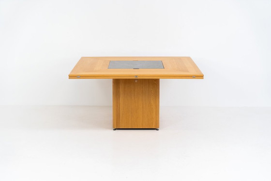 Cette icône belge, signée Bob Van den Berghe, est un modèle de fonctionnalisme géométrique. Grâce à ses rallonges pliantes emblématiques, la Cirkante se transforme en un clin d'œil d'un carré massif en un octogone spacieux, permettant d'accueillir de 8 à 12 personnes. En supprimant le bout de table, elle place chaque convive au cœur de la conversation.