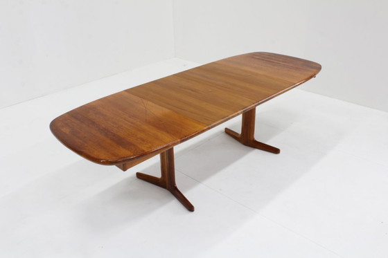 Table à manger ovale extensible vintage danoise en teck massif des années 1960. Fabriquée en teck massif et non en placage, elle est facile d'entretien.