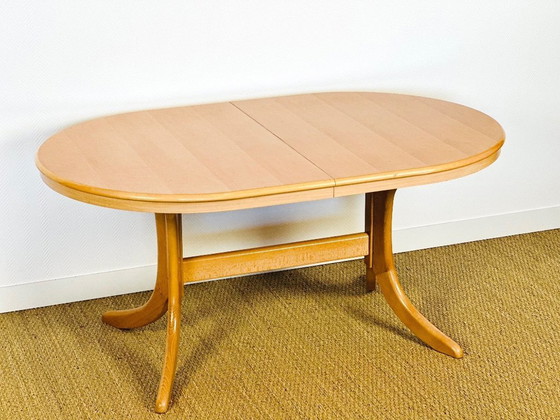 Cette élégante table extensible en bois de hêtre présente un design intemporel alliant fonctionnalité et esthétique.