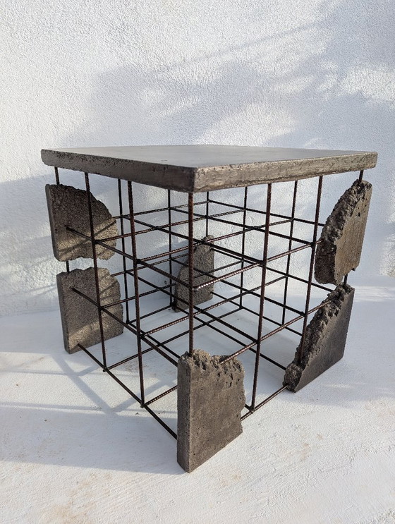 Cette table basse unique allie design industriel et matériaux robustes, idéale pour ceux qui recherchent une pièce originale pour leur intérieur. La structure métallique apparente et les éléments en béton vieilli créent un contraste visuel qui apporte du caractère à n'importe quelle pièce.