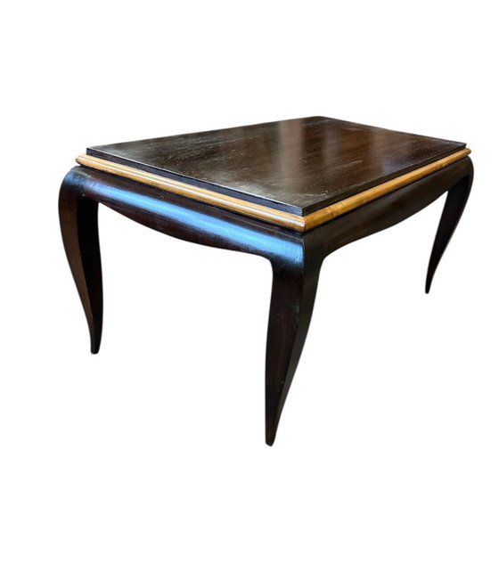 Plongez dans l'élégance de l'époque Art déco avec cette exquise table basse. Confectionnée dans un bois sombre et riche, cette pièce respire le raffinement et un style intemporel, devenant ainsi le centre de la pièce maîtresse de tout intérieur élégant.