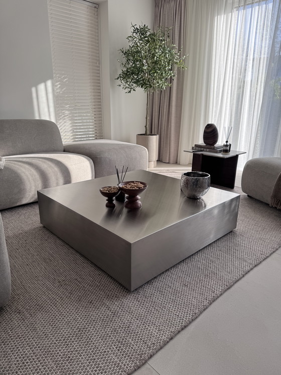 Table basse en acier inoxydable - Dimensions : 120 x 120 cm, hauteur : 30 cm