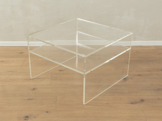 Magnifique table basse dans un style Bauhaus clair des années 1960. Cadre et plateau de haute qualité en verre acrylique de 15 mm d'épaisseur avec une étagère supplémentaire pour les magazines. Fabriquée en Allemagne.