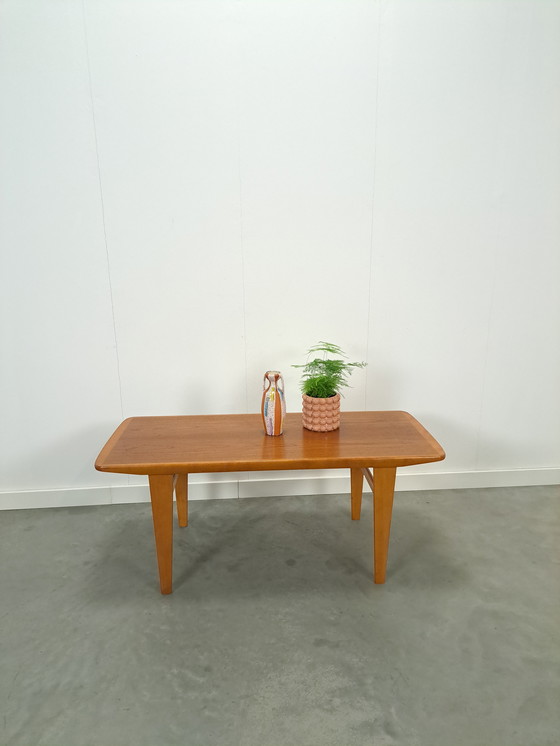 La table basse est en bon état, avec des signes d'utilisation correspondant à son âge vintage. Il y a quelques rayures, bosses et légères taches sur le plateau et les pieds.