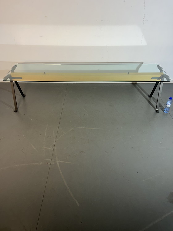 Elle peut être utilisée avec un ou deux plateaux en verre (voir photos). Cette pièce provient de la résidence privée d'un galeriste renommé d'Amsterdam.