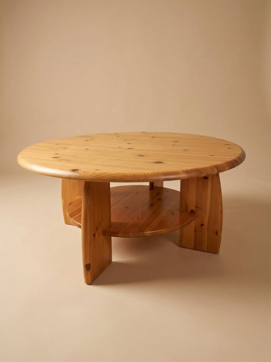 Pine coffee table 1980/90 Dimension: Diameter: 88 cm Height: 41 cm Vintage item, retains traces of time (some discoloration / scratches, see photos)