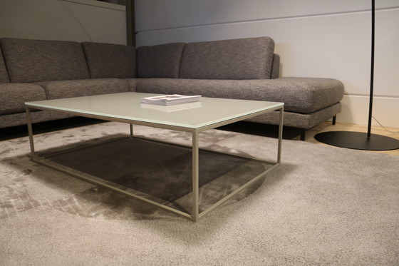 Table basse Rolf Benz 912217. La table basse Rolf Benz 912 est subtilement mise en valeur par les formes cubistes de sa structure. Celle-ci se prolonge sur le sol, créant un dessin de lignes esthétique. Détails du produit : * Marque : Rolf Benz * Modèle : table basse 912-217 * Plateau : verre blanc Opti, RAL 7044, gris soie * Structure : RAL 7044 * Dimensions : L 76 x l 116 x H 35 cm * Note de style : table basse moderne, gris très clair