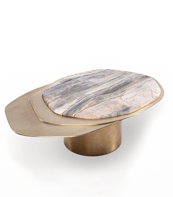 Table basse sculpturale en laiton et marbre 120cmX45cm