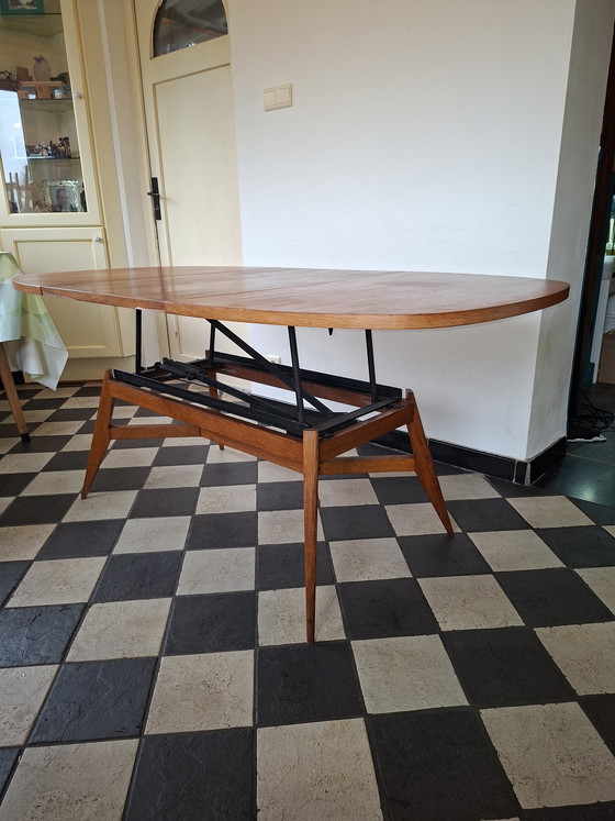 Découvrez le charme des années 60 avec cette magnifique table Smørrebrød Denmark. Idéale comme table basse ou table à manger, elle est réglable en hauteur et en longueur.