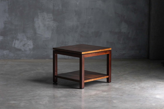 Cette table d'appoint minimaliste reflète la maîtrise d'Axel Vervoordt en matière de design intemporel et de matériaux organiques. Fabriquée en bois massif, elle est dotée d'un plateau en bambou et d'une étagère inférieure, ce qui lui confère une texture subtile qui rehausse sa chaleur naturelle. Ses lignes audacieuses mais sans prétention exsudent une simplicité raffinée qui s'aligne sur la philosophie wabi-sabi - où les imperfections naturelles et la patine rehaussent sa présence pleine d'âme. Avec sa forme compacte et polyvalente et ses rangements pratiques, cette pièce incarne la beauté fonctionnelle et l'élégance discrète, ce qui en fait un complément harmonieux à tout intérieur.